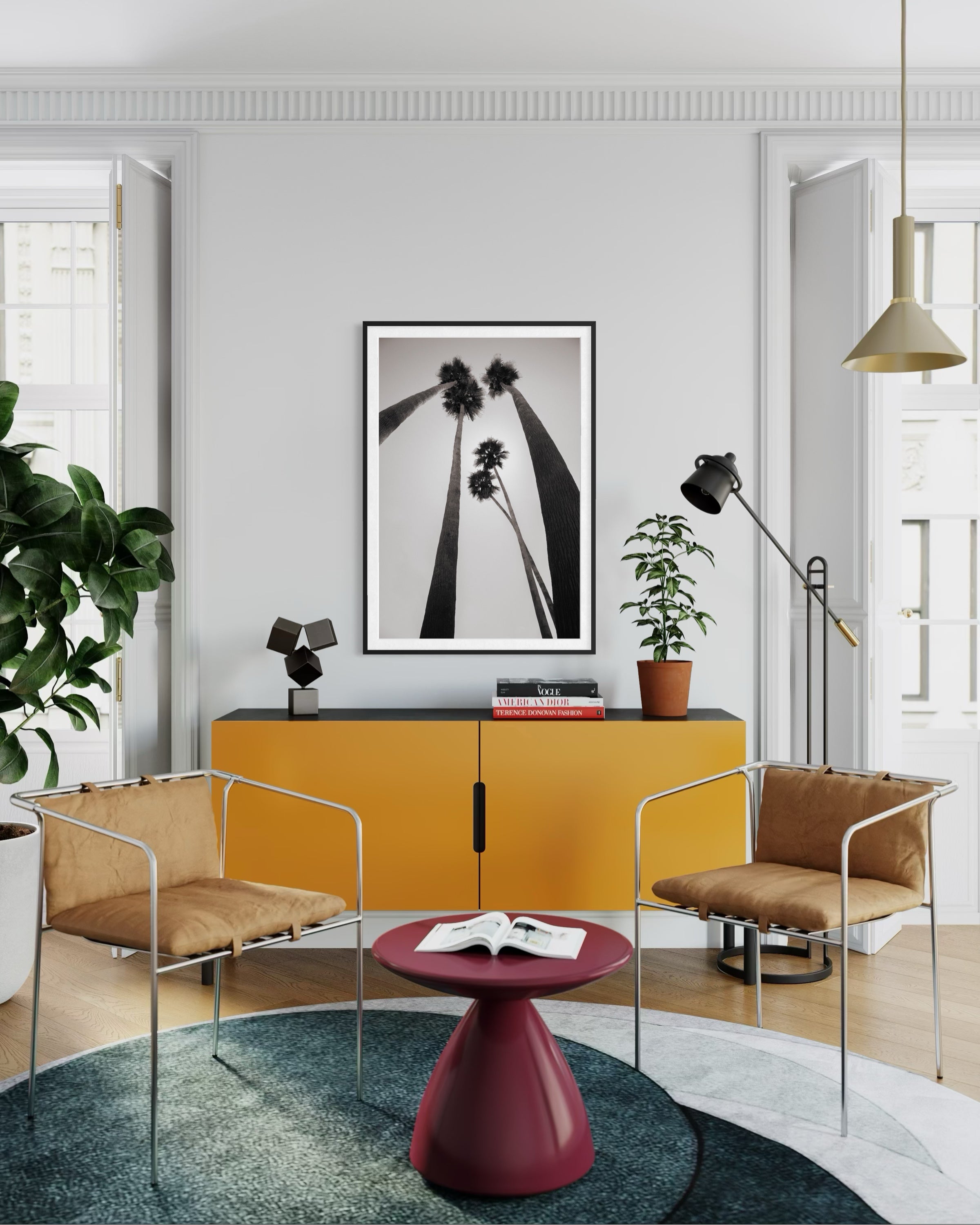 Palms rising like giants, cutting straight into the sky. Trunks lean hard, angles sharp, no softness in their climb. The shot comes from the ground up—perspective stretched, tension in the frame. This isn’t tropical calm; it’s vertical power, raw silhouettes staking their claim against the light.